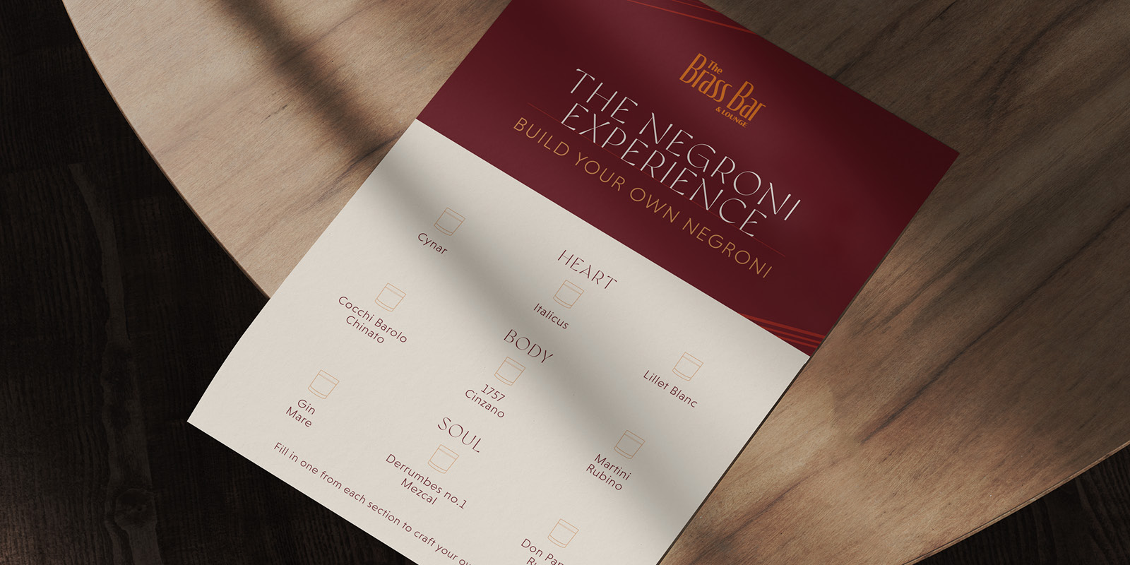 The concept underpinning all designs was blending classic elegance with a modern flourish. A colour palette of maroon, sanguine red, orange and shades of brass and the typography system were inspired by early 20th century Italian posters. Flexible social media concepts highlighted key offerings with sophisticated photography and illustrations, to exude an elegant feel to reflect the 5-star location and interiors of the bar. The new ‘look’ for Brass Bar was rolled out in the deliverables for a Masterclass event, as well as new dedicated social media pages.