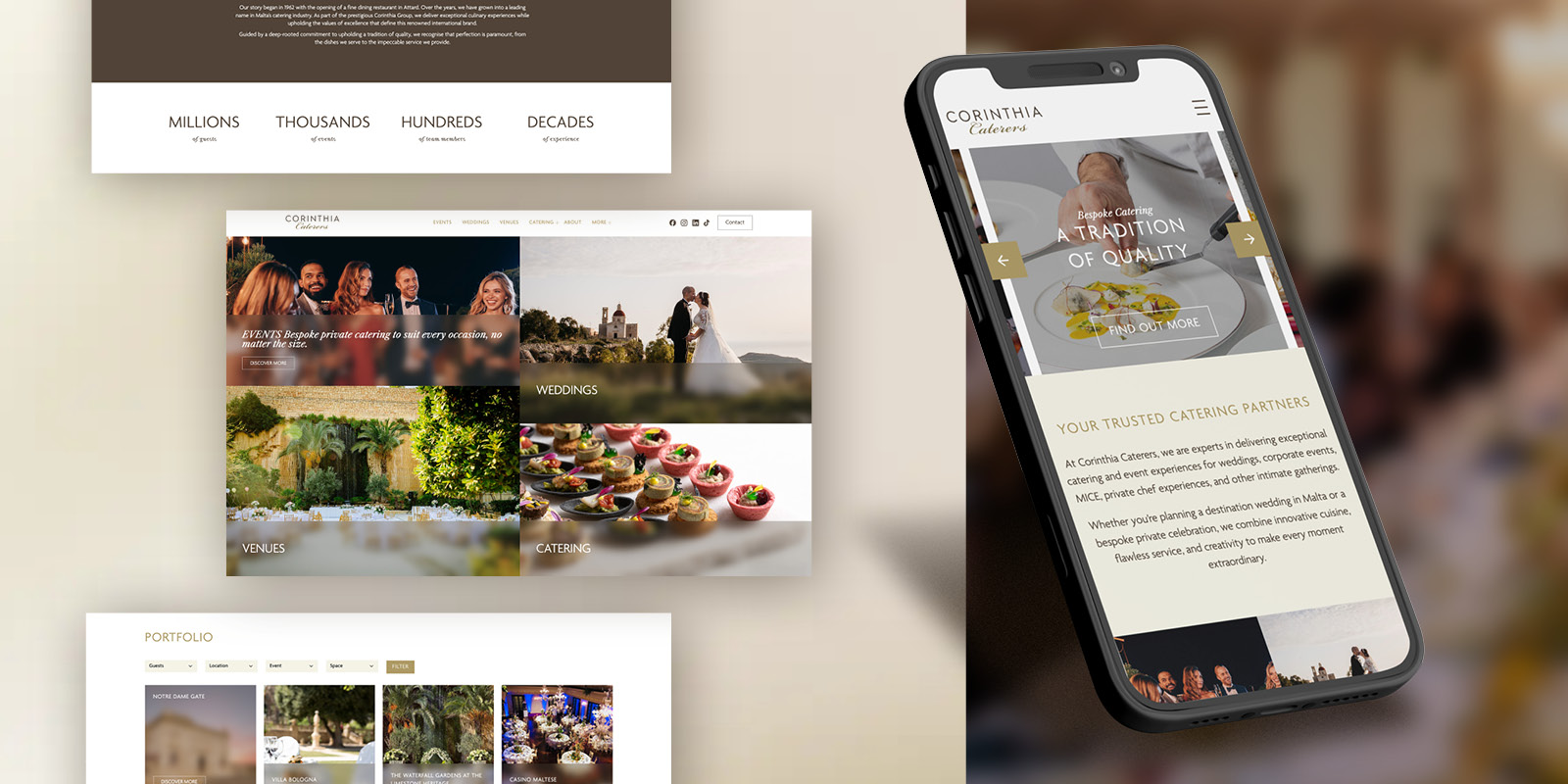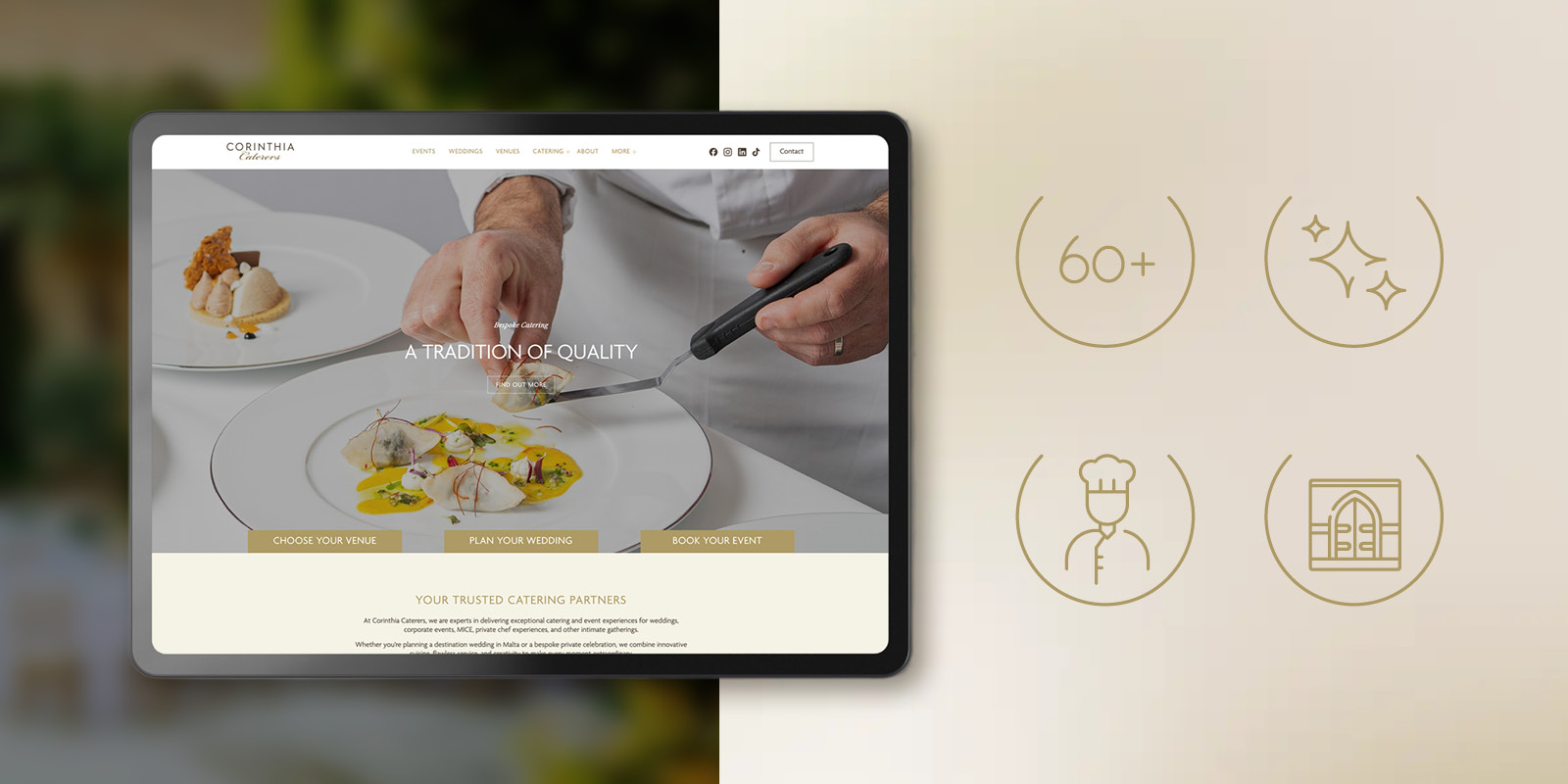 Corinthia Caterers is a leading name in the catering industry delivering exceptional culinary and event experiences for weddings, corporate events, MICE, private chef experiences, and other intimate gatherings. Their website had become clunky and slow and was not optimised for mobile.